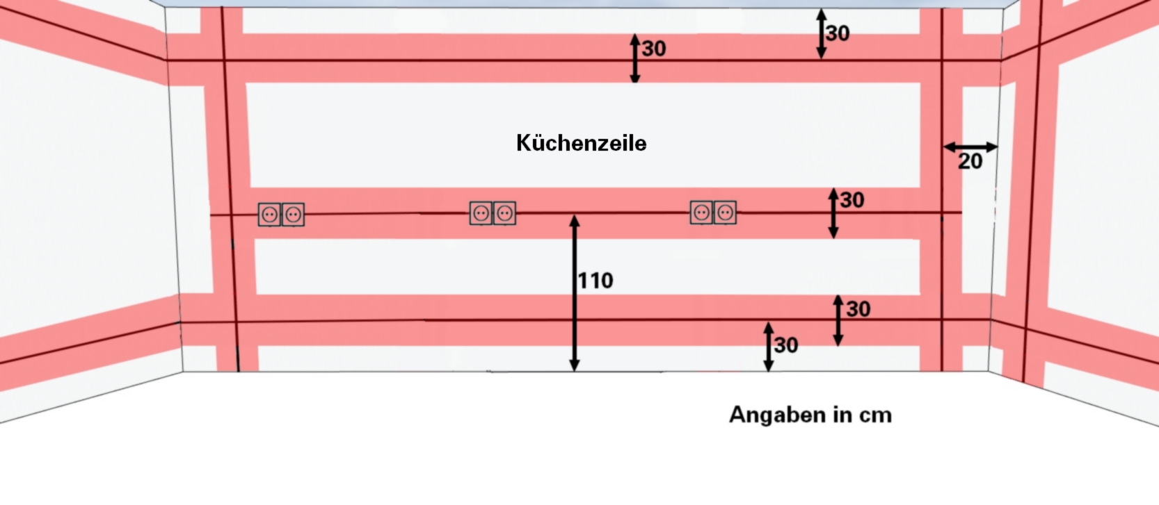 Installationszone für die Kabelverlegung - Leitungsverlegung in Küchen