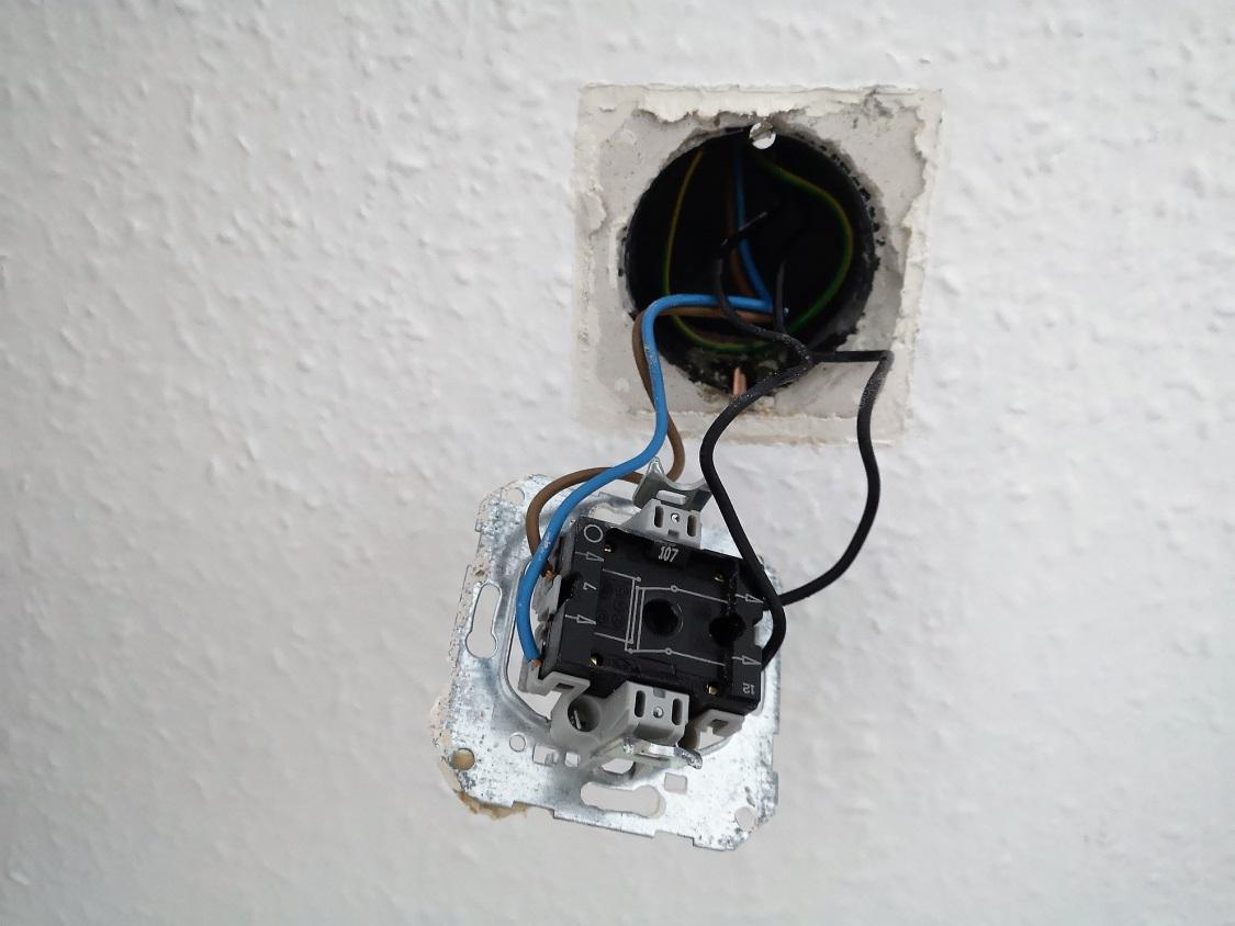 Wir gehen davon aus, dass die Zuleitung aus dem Verteilerkasten und die Verbindung zur Lampe schon fertig in einer Unterputzdose angebracht sind. Hierbei handelt es sich um zwei dreiadrige Kabel bestehend aus einer Phase, einem Neutralleiter und des Schutzleiters. Nachdem die elektrische Anlage auf Spannungsfreiheit geprüft wurde, kann direkt mit den Arbeiten begonnen werden.