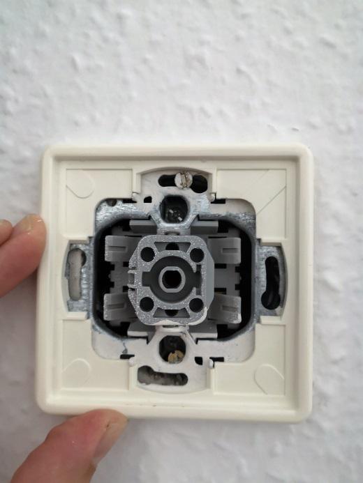 - Schalter in die Dose einbauen und mit den zwei dafür vorgesehenen Schrauben fixieren.