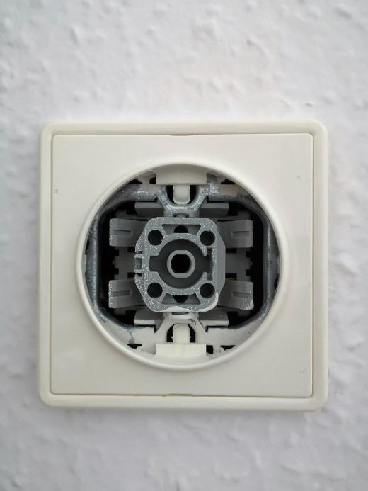 Nachdem der Schalter an sich nun richtig angeschlossen wurde, muss er jetzt in der Unterputzdose verbaut werden. Dafür benötigt man einen Schraubendreher sowie die Abdeckung und Wippe und geht wie folgt vor: