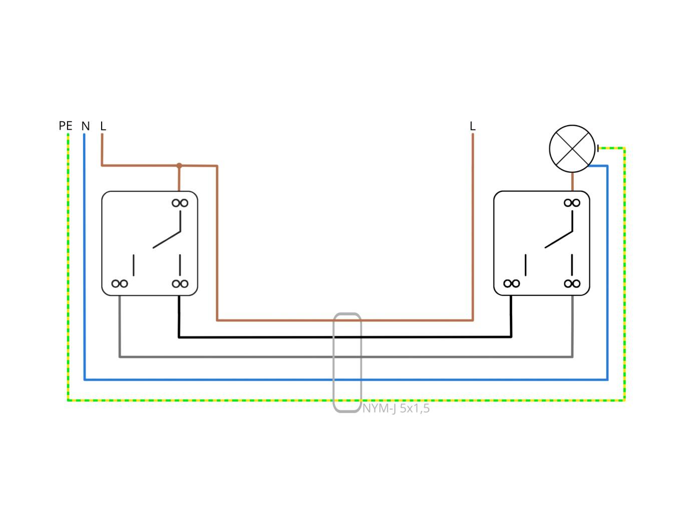 Wenn jetzt die Anlage wieder unter Spannung gesetzt wird, kann das Licht von beiden Schaltstellen ein und aus geschaltet werden.