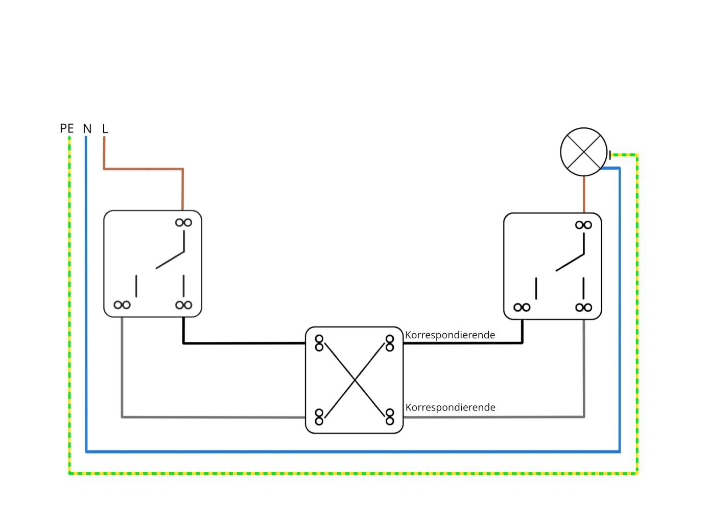 Kreuzschaltung für Wechselschaltung mit 3 Schaltern