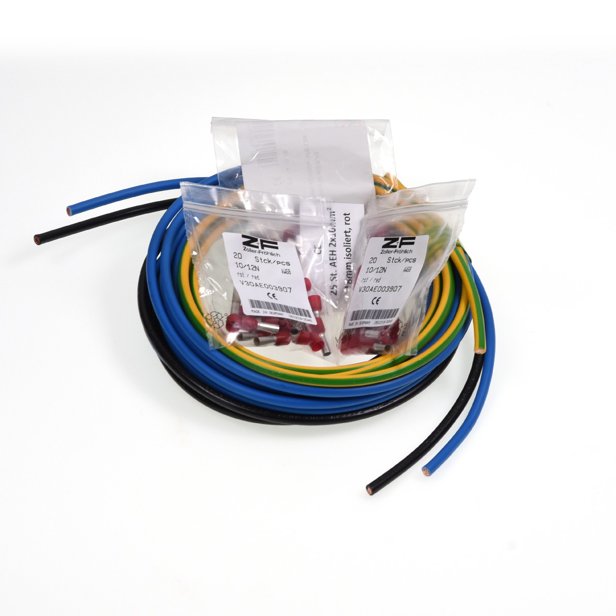 Zusätzlich liefern wir farbcodierte Rangierklemmen für digitale Eingänge (8 Stück), analoge Eingänge (4 Stück), Tree (bis zu 17 Anschlussmöglichkeiten) sowie für 24 V-Anwendungen (bis zu 17 Anschlussmöglichkeiten). Passende Verdrahtungsadern müssen bauseits gestellt werden.